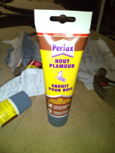 Je calfeutre bien partout pour que rien ne passe. Je ponce encore en 150 et un petit coup d’acétone pour nettoyer le tout.