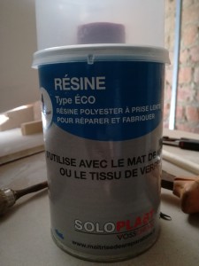 Après trois passages, je me rends compte que je n’arrive pas à avoir un résultat parfait : les couches supplémentaires destinées à améliorer l’état de surface ne tiennent pas bien. Il me faut donc tout stabiliser : j’opte donc pour une couche de résine qui devrait tout fixer.